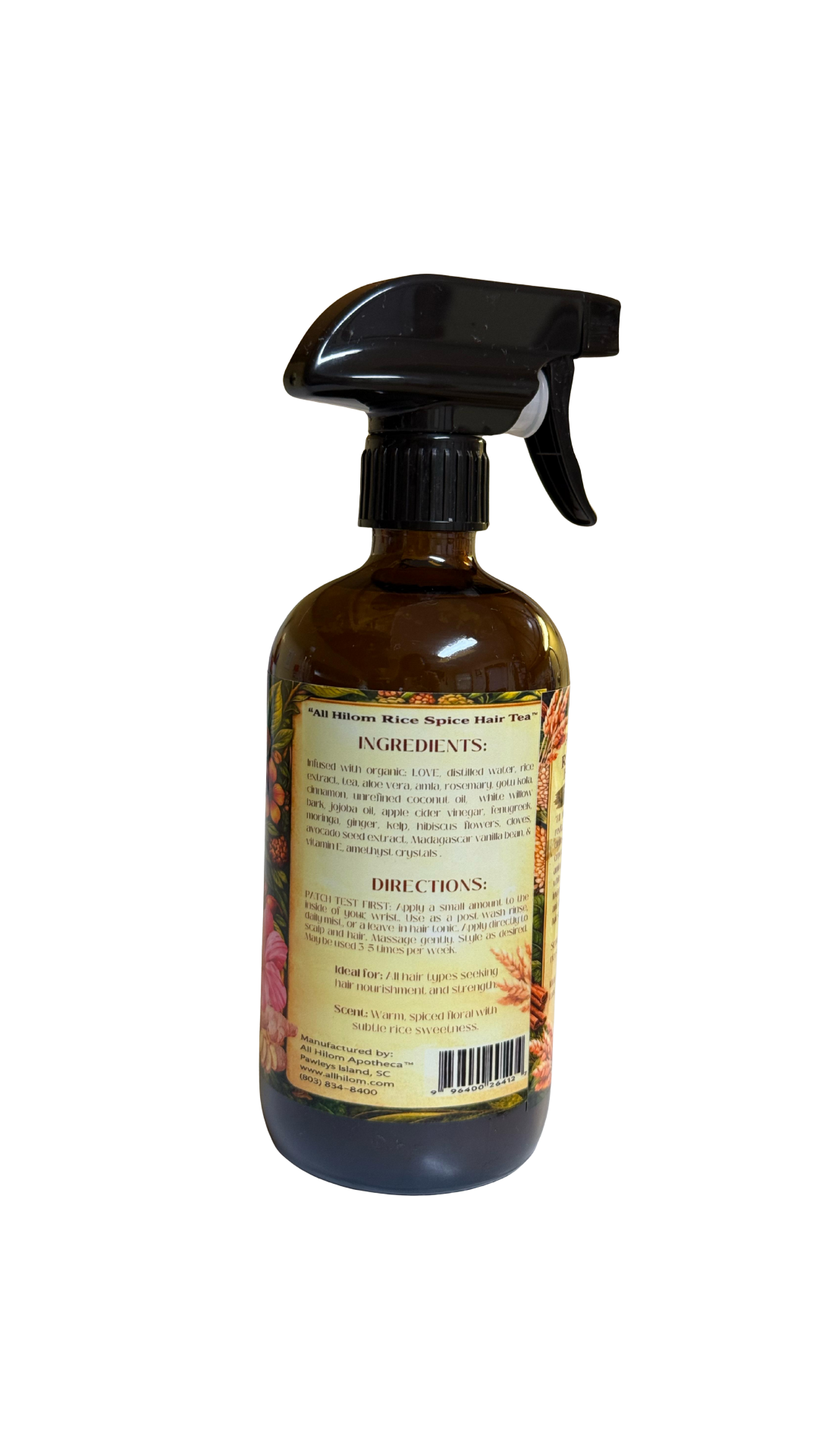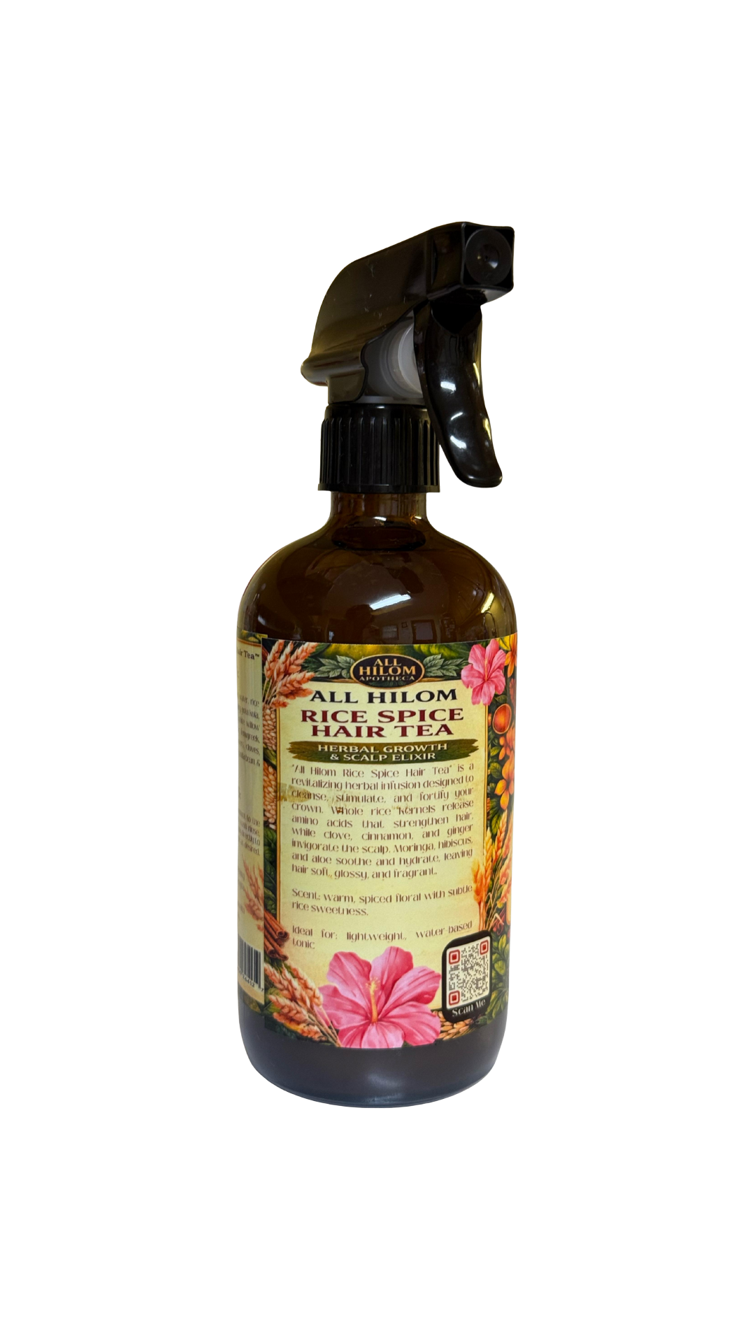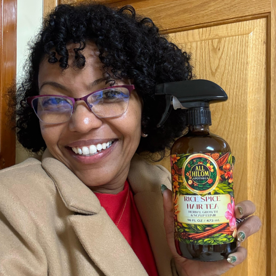 “All Hilom Rice Spice Hair Tea™” is a revitalizing herbal infusion designed to cleanse, stimulate, and fortify your crown. Whole rice kernels release amino acids that strengthen hair, while clove, cinnamon, and ginger invigorate the scalp. Moringa, hibiscus, and aloe soothe and hydrate, leaving hair soft, glossy, and fragrant.